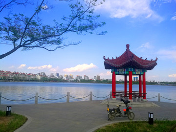 風(fēng)光秀麗的東昌湖環(huán)繞聊城古城一周,始建于宋熙寧三年(公元1070年)。當(dāng)時(shí)因修筑城墻以及護(hù)城堤挖土而成,后經(jīng)歷代開闊,現(xiàn)在面積已達(dá)6.3平方公里,與杭州西湖相當(dāng),是濟(jì)南大明湖的4—5倍。東昌湖由10個(gè)湖區(qū)和20塊水面組成,湖岸線長達(dá)16千米,是中國江北地區(qū)罕見的大型城內(nèi)湖泊,她為聊城這座城市增加了靈氣,是聊城的最靚點(diǎn)。她以黃河水為源,積水約1680萬立方米,水深3—5米,常年不竭。東昌湖水清澈;景色宜人,令游客流連忘返,是國家釣魚基地,適宜水上游樂項(xiàng)目的開發(fā)與建設(shè)。