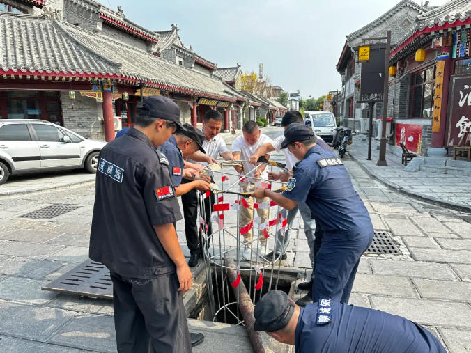 水上古城景區(qū)部署重點防汛點位3處,鋪設沙袋、防汛擋板30米,清理雨水箅子36處,安裝防墜裝置6套,以網(wǎng)格化排查實現(xiàn)核心區(qū)防汛布控全覆蓋。