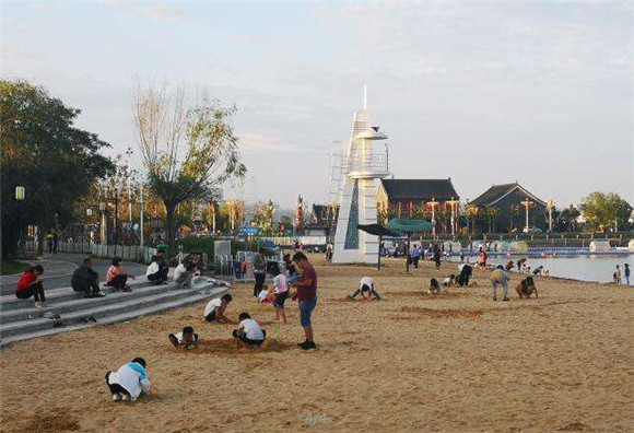 景區(qū)內(nèi)還配備了沙灘浴場,游客可以在此游泳、戲水,在沙灘上完成自己天馬行空的DIY創(chuàng)作。